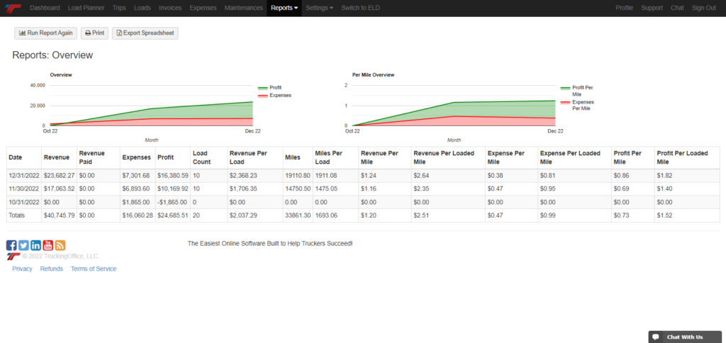 Whether you want numbers or graphs to take a closer look at your trucking business overview report, TruckingOffice PRO has the view you need to understand the status of your company.