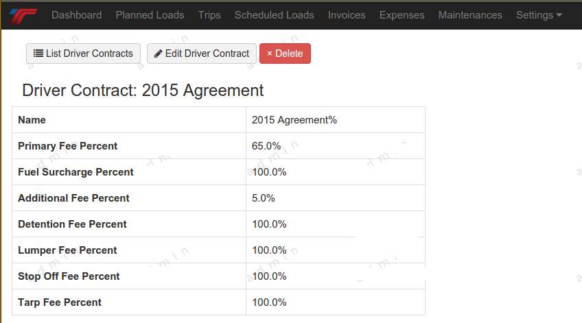 Keeping on top of your driver settlements can be complex. TruckingOffice support pay per mile, load percent, and manual pay. For more complex payment agreements TruckingOffice Pro includes driver contracts. This allows you to customize the split of fees to a driver based on a negotiated agreement.