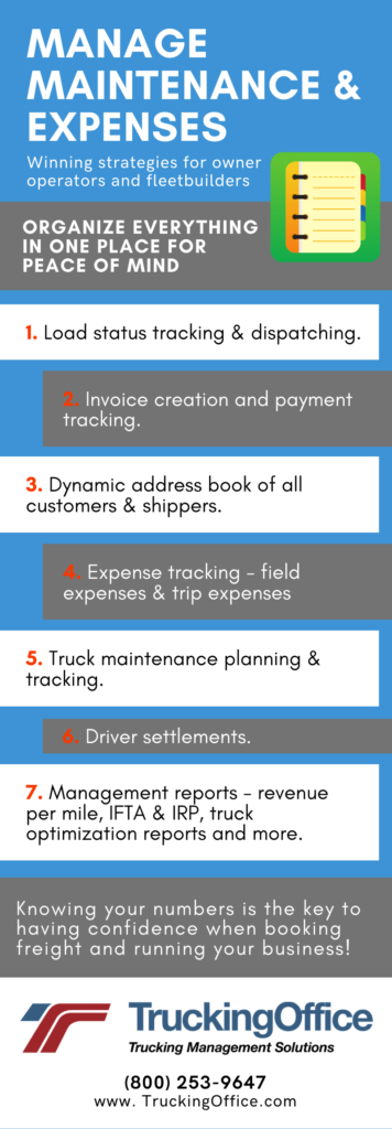 Your trucking business needs to track mileage, not only for billing but for taxes like IFTA and IRP. It needs to consider when and how you take care of your equipment. You need to know how much money you’re making on a load.